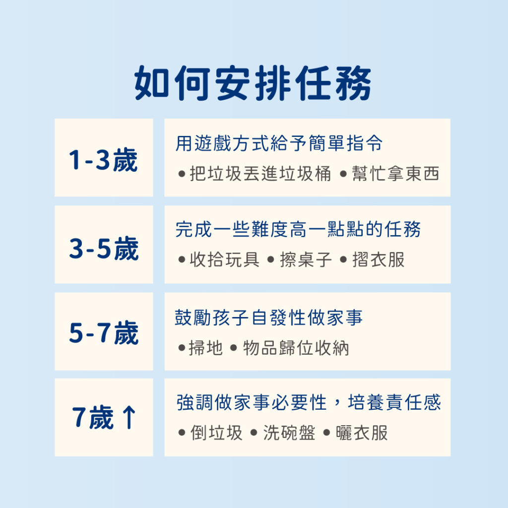 7 歲以上|建立責任制度,讓孩子理解做家事是生活的一部分。