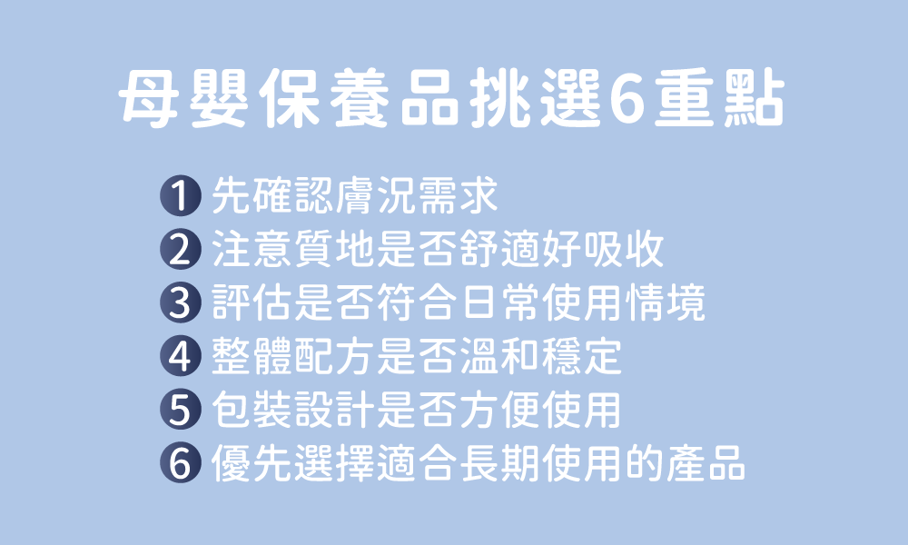 如果你正在找母嬰保養品怎麼挑的答案,可以先記住以下 6 個方向: